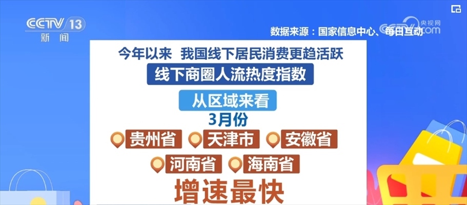 “人氣”是觀察線下消費熱度的重要視角。國家信息中心對人流數據分析發(fā)現(xiàn),2024年以來,我國線下居民消費更趨活躍,線下商圈人流熱度指數一季度較2023年同期增長9.9%,其中,3月同比增長17.7%。