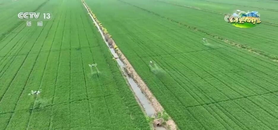 在江蘇淮安,470多萬畝小麥進入破口抽穗期。在淮安市盱眙縣的三河農(nóng)場里,無人機和植保機分別在空中和地面給麥田施肥、除蟲。今年,當?shù)卮罅ν七M數(shù)字農(nóng)業(yè)建設,建立了智慧農(nóng)業(yè)平臺,農(nóng)業(yè)部門利用平臺提供的土壤濕度、溫度,作物長勢等數(shù)據(jù),給種植戶提供精準的病蟲害防治和施肥方案,并調(diào)度多種農(nóng)機投入田間管理,讓春管更高效,為農(nóng)業(yè)生產(chǎn)插上“科技翅膀”。