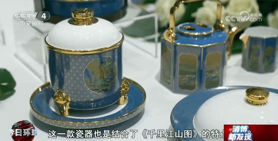 江西省景德鎮(zhèn)市商務(wù)局工作人員章少聰介紹稱:“這一幅畫是北宋王希孟先生創(chuàng)作的,叫作《千里江山圖》。這一款瓷器也是結(jié)合了《千里江山圖》的特點(diǎn),把中國傳統(tǒng)畫中的山水、花鳥都完全在瓷器上面展現(xiàn)出來。”