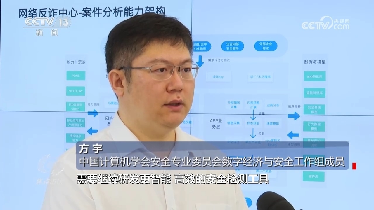 方宇:“下一步,針對涉詐APP的發(fā)現(xiàn),需要繼續(xù)研發(fā)更智能、高效的安全檢測工具,建立涉詐APP的黑名單數(shù)據(jù)庫。另外,結(jié)合一些新型、智能化的技術(shù)手段,通過對網(wǎng)絡(luò)流量分析,及時發(fā)現(xiàn)詐騙流量,并通過公安、網(wǎng)信、金融、市場監(jiān)管等部門進一步加強聯(lián)動、信息及時共享、及時進行阻斷,多措并舉,共同努力,形成合力,打擊涉詐APP。”
