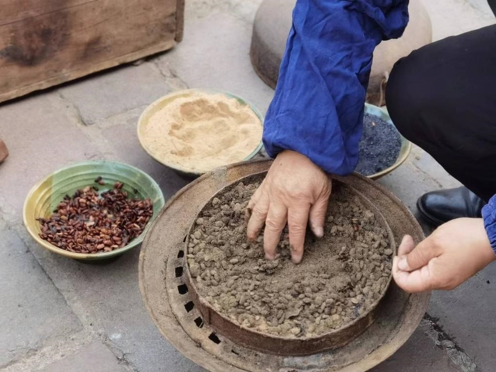 沖好針孔,便在磨石上反復銼尖。隨后倒入熱鍋里翻炒,再舀入一瓢水,針的剛性和硬度由此增加。接下來便輪到三大碗“大陽秘方”登場:白崖土粉末、松木炭和發(fā)酵后的豆豉,用于蒸針。“松木炭可以增加鋼針的含碳量,提升硬度;豆豉增加亮度;白崖土粉末作為分散劑讓針受熱均勻。這樣處理后可以保證針質更堅硬又有光澤?!?/p>