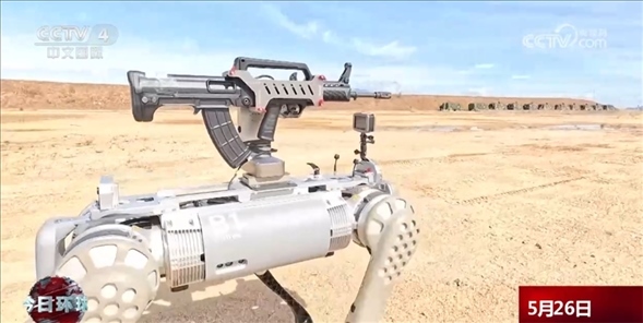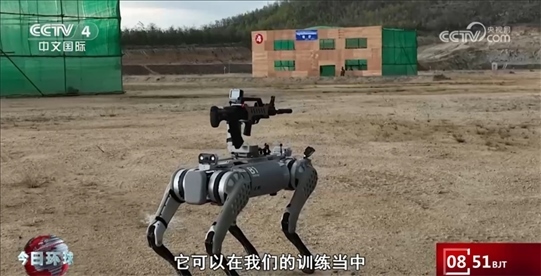 中方參演隊(duì)員陳威介紹:“我現(xiàn)在操作的是B1四足機(jī)器狗,它可以在我們的訓(xùn)練當(dāng)中代替我們的隊(duì)員先行進(jìn)行偵察和發(fā)現(xiàn)敵人后火力打擊,是我們城市攻防作戰(zhàn)中的新成員。”