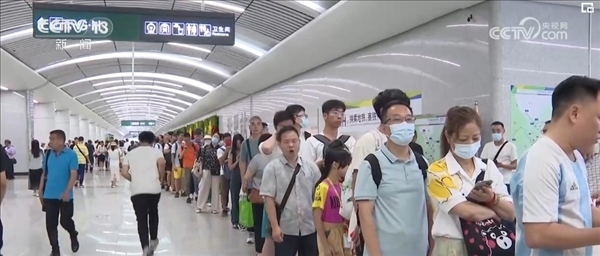 讓陳紅一家人始料不及的是,像她們一樣前來體驗新線路的旅客不在少數(shù),安檢站排起了大長隊。等到她們進站之后,首班車已經(jīng)開走,但她們卻也并不著急。