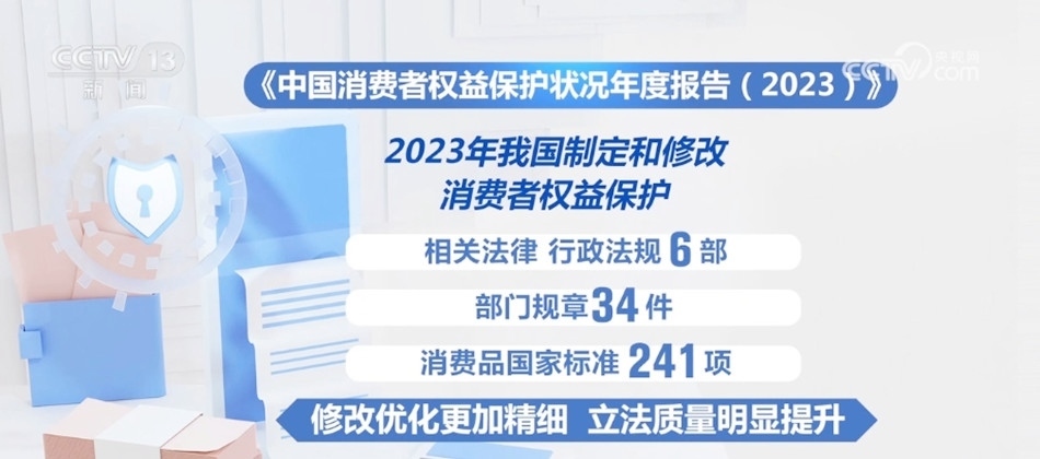 年度報(bào)告顯示,2023年我國制定和修改了消費(fèi)者權(quán)益保護(hù)相關(guān)法律、行政法規(guī)6部、部門規(guī)章34件、消費(fèi)品國家標(biāo)準(zhǔn)241項(xiàng),修改優(yōu)化更加精細(xì),立法質(zhì)量明顯提升。