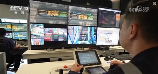 在天津港北疆港區(qū)智能化集裝箱碼頭,隨著貨輪的靠港,長達15.6米的無人駕駛運輸機器人就忙碌起來。此時,在智控中心里裝卸操控、車輛調度,一個個指令通過鍵盤、按鈕精準傳達到碼頭。