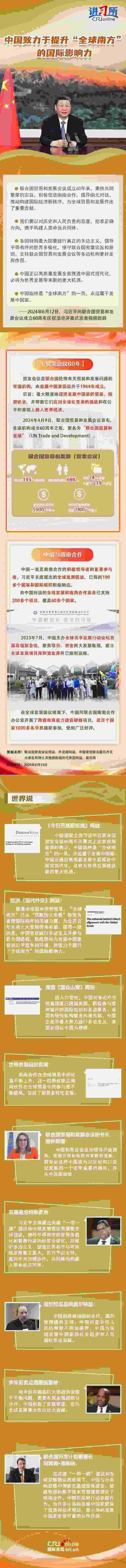 6月12日,中國國家主席習近平向聯(lián)合國貿(mào)易和發(fā)展會議成立60周年慶祝活動開幕式發(fā)表視頻致辭時強調(diào),中國正以高質(zhì)量發(fā)展全面推進中國式現(xiàn)代化,必將為世界發(fā)展帶來新的更大機遇。