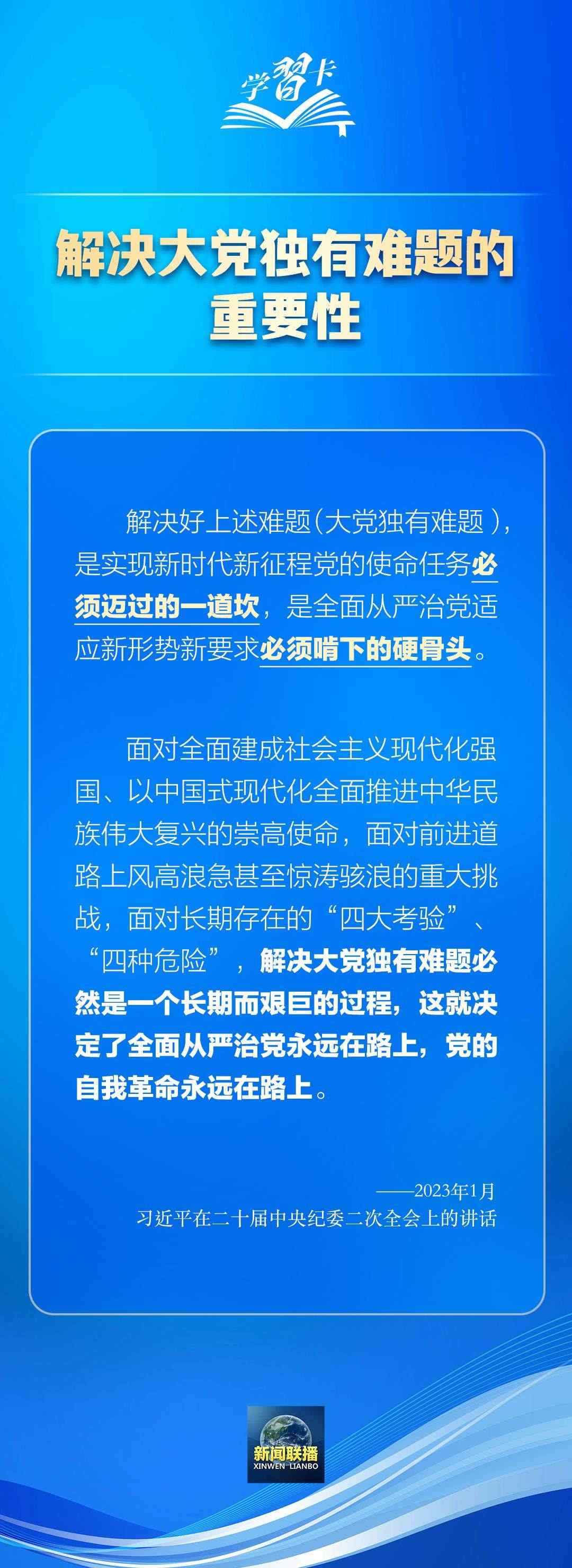 習近平總書記在不同場合多次強調(diào)全面從嚴治黨、黨的自我革命的重要性。解決好大黨獨有難題,是實現(xiàn)新時代新征程黨的使命任務必須邁過的一道坎,是全面從嚴治黨適應新形勢新要求必須啃下的硬骨頭。
