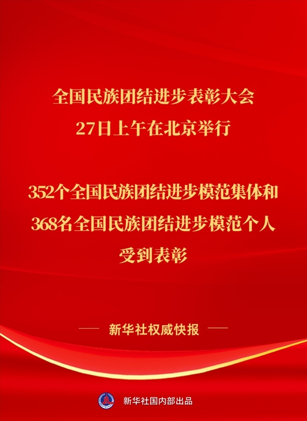 全國(guó)民族團(tuán)結(jié)進(jìn)步表彰大會(huì)27日上午在北京舉行。352個(gè)全國(guó)民族團(tuán)結(jié)進(jìn)步模范集體和368名全國(guó)民族團(tuán)結(jié)進(jìn)步模范個(gè)人受到表彰。各族兒女像石榴籽一樣緊緊抱在一起,推動(dòng)中華民族成為認(rèn)同度更高、凝聚力更強(qiáng)的命運(yùn)共同體。