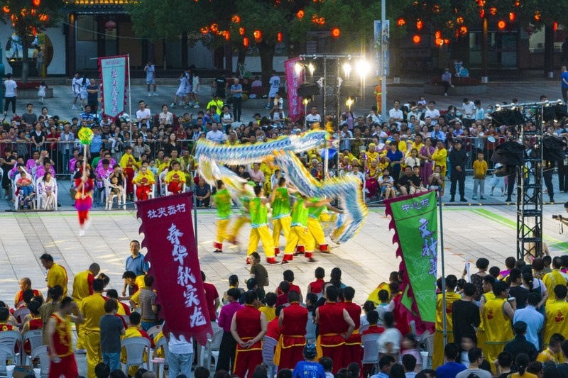 寧波市鎮(zhèn)海區(qū)九龍湖鎮(zhèn),當(dāng)?shù)鼐用褡园l(fā)組成的14支舞龍隊(duì)同臺(tái)競技 省農(nóng)業(yè)農(nóng)村廳供圖