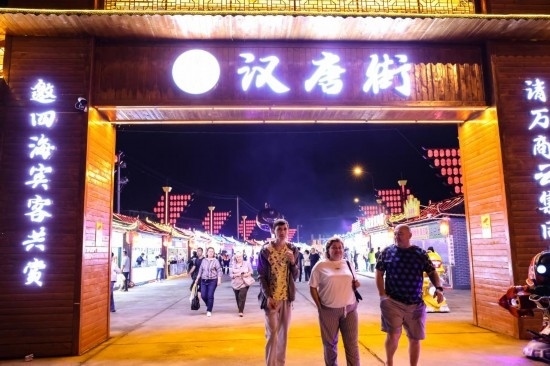 2023年6月27日,俄羅斯游客在琿春市漢唐街夜市逛街。新華社記者 顏麟蘊 攝