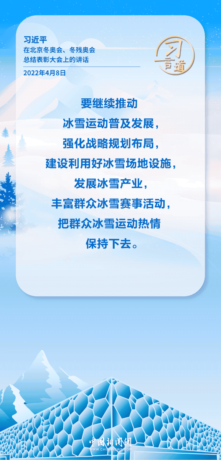 冰雪運(yùn)動(dòng)難度大、要求高、觀賞性強(qiáng),很能點(diǎn)燃人的激情。習(xí)近平總書記多次在不同場(chǎng)合表達(dá)對(duì)冰雪運(yùn)動(dòng)的重視,強(qiáng)調(diào)持續(xù)推進(jìn)冰雪運(yùn)動(dòng)發(fā)展。