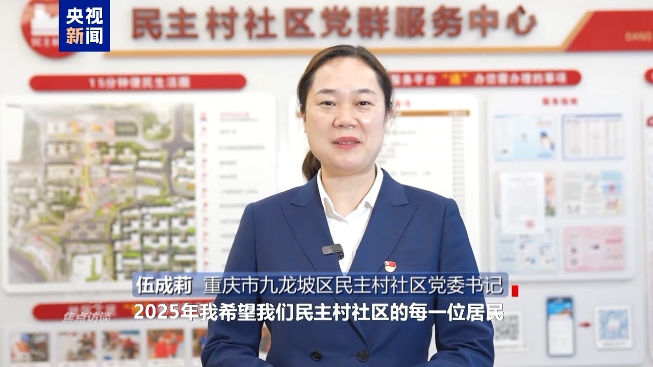 重慶市九龍坡區(qū)民主村社區(qū)黨委書記 伍成莉:2025年我希望我們民主村社區(qū)的每一位居民心往一處想,勁兒往一處使,把我們的社區(qū)建設(shè)得更加美好。