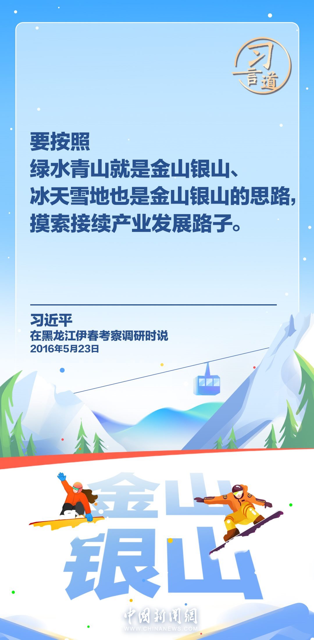 冰天雪地也是金山銀山。習(xí)近平總書記高度重視發(fā)展冰雪經(jīng)濟(jì),多次作出重要指示批示,強(qiáng)調(diào)冰雪產(chǎn)業(yè)是一個(gè)大產(chǎn)業(yè),也是一個(gè)朝陽產(chǎn)業(yè)。