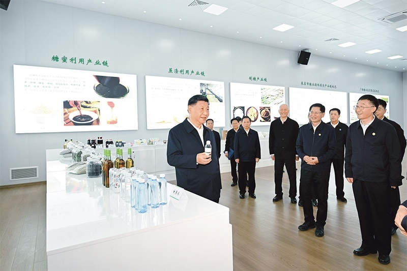 2023年12月14日至15日,中共中央總書記、國家主席、中央軍委主席習(xí)近平在廣西考察。這是14日下午,習(xí)近平在來賓東糖鳳凰有限公司考察。 新華社記者 謝環(huán)馳/攝