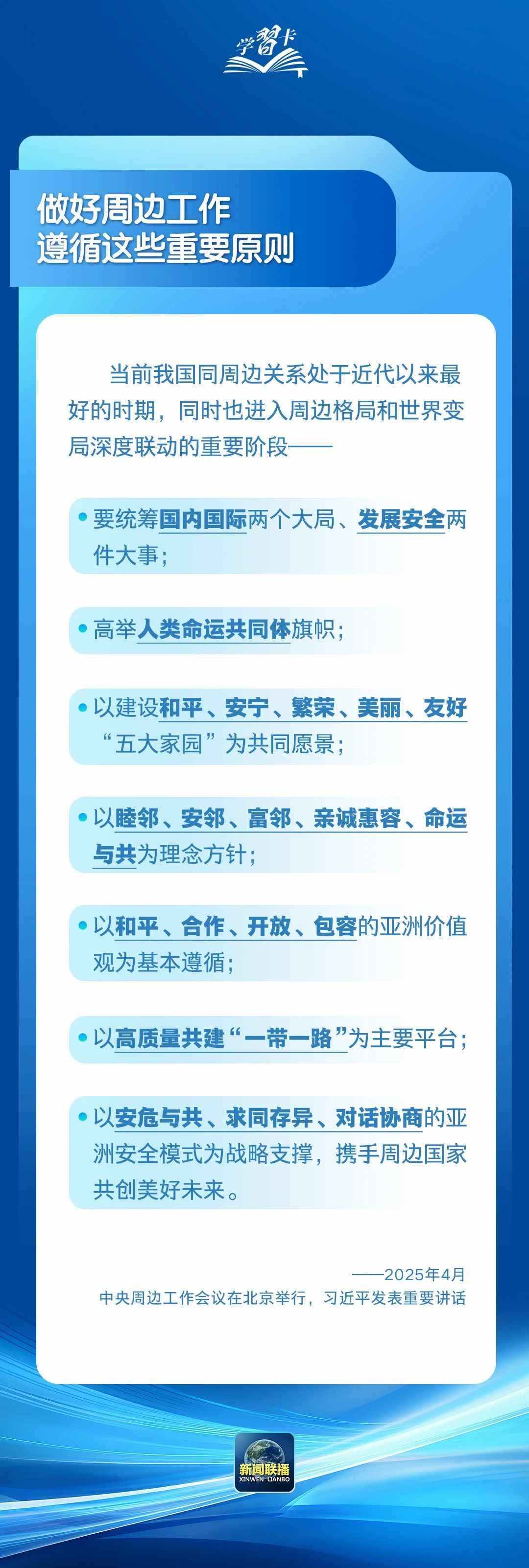 中央周邊工作會議8日至9日在北京舉行。習(xí)近平在重要講話中強(qiáng)調(diào)要聚焦構(gòu)建周邊命運(yùn)共同體,努力開創(chuàng)周邊工作新局面。