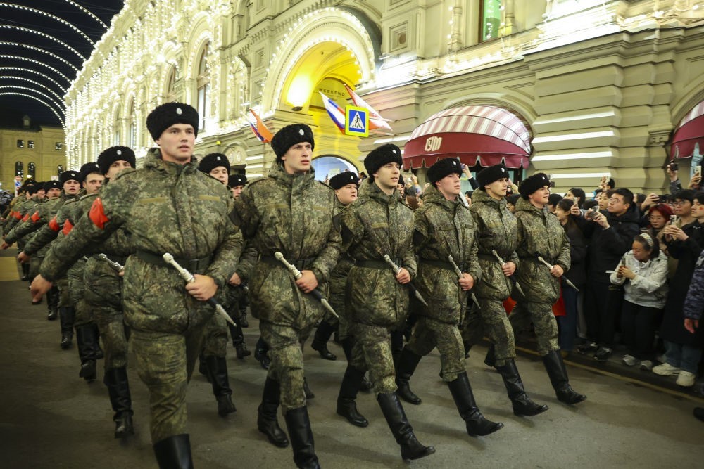 5月3日晚,受閱方隊在俄羅斯首都莫斯科前往紅場參加彩排。當日,俄羅斯紀念蘇聯(lián)偉大衛(wèi)國戰(zhàn)爭勝利80周年閱兵式彩排在莫斯科舉行。新華社記者 姚大偉 攝
