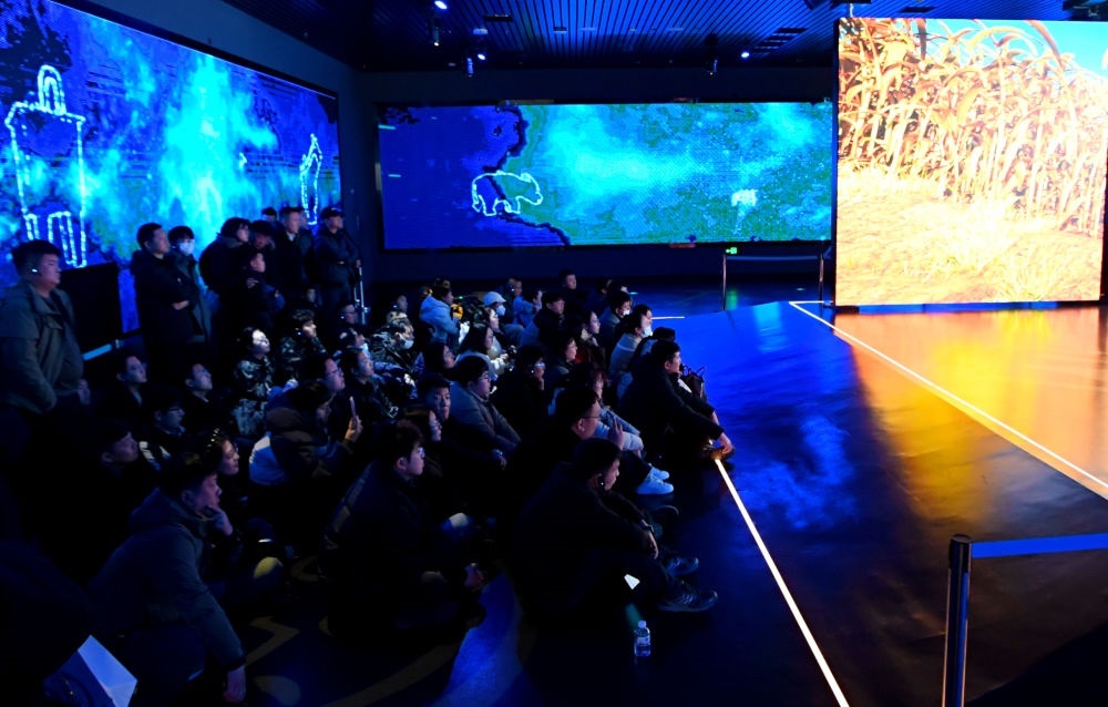 2025年2月21日,游客在安陽殷墟博物館新館數字展廳內觀展。