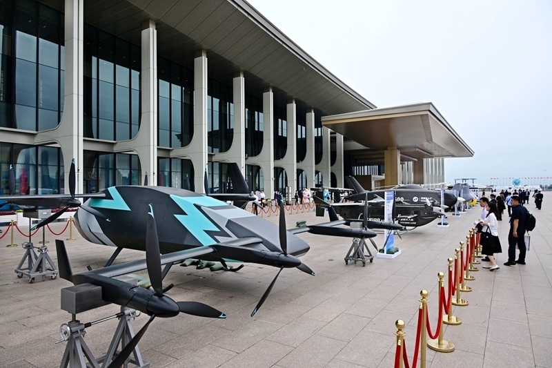 6月19日,人們?cè)诘诹鶎每鐕?guó)公司領(lǐng)導(dǎo)人青島峰會(huì)室外展場(chǎng)參觀。