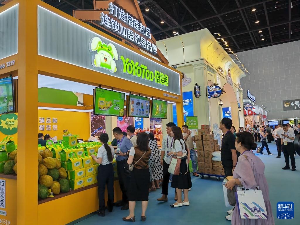 特色榴蓮制品吸引消費者體驗和購買(9月19日攝)。新華社記者 朱麗莉 攝