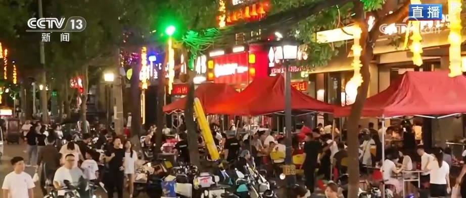 而老街路兩旁的餐館商鋪也是人氣正盛。最近正值高溫天氣,夜晚到來酷暑減緩,河畔邊涼風(fēng)習(xí)習(xí),許多食客都選擇坐在戶外用餐。