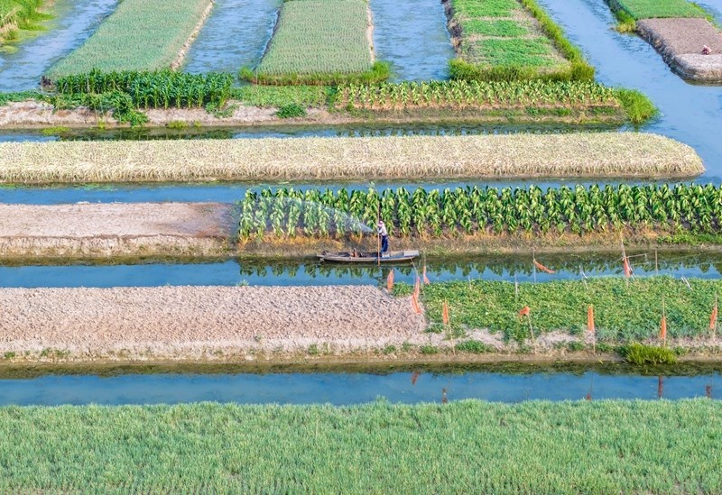 7月7日,在江蘇里下河地區(qū)農(nóng)科所(揚(yáng)州市農(nóng)科院),農(nóng)民在試驗(yàn)田勞作(無(wú)人機(jī)照片)。