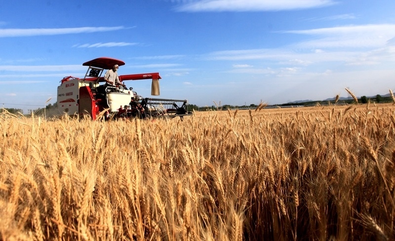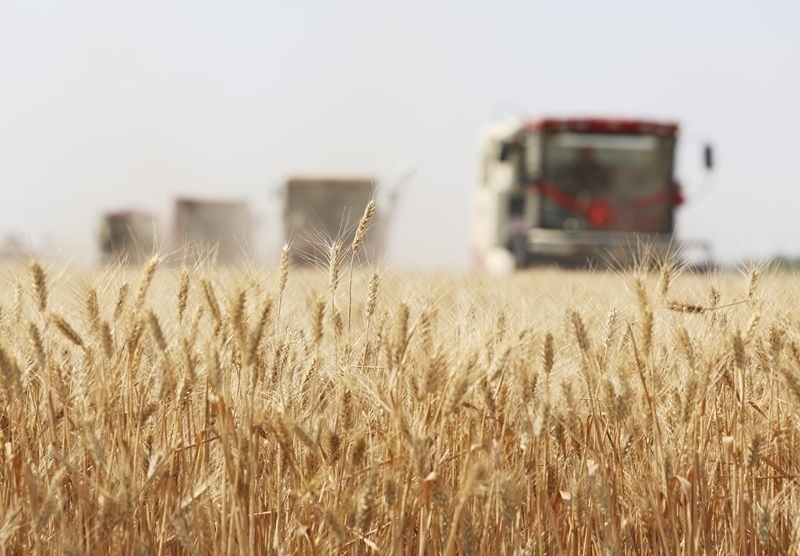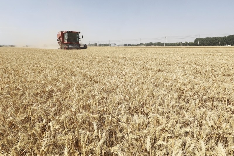 6月10日,河北省石家莊市欒城區(qū)柳林屯鄉(xiāng)東牛村村民駕駛農(nóng)機(jī)收割小麥。
