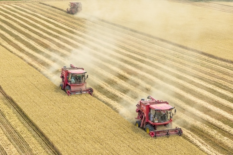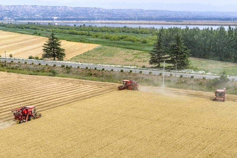6月5日,河南省焦作市溫縣武德鎮(zhèn)農(nóng)民駕駛收割機(jī)收獲小麥。