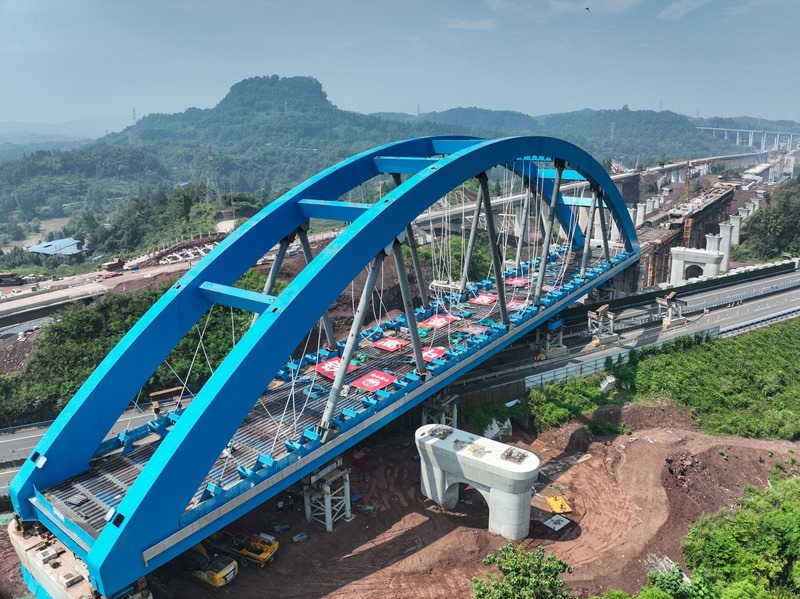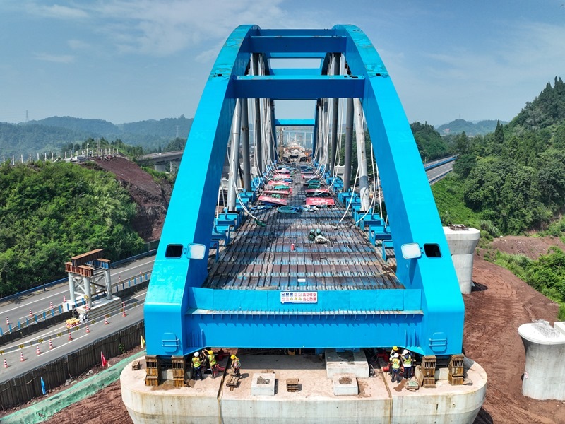 當日,由中鐵四局承建的西渝高鐵跨營達高速公路大橋主體平穩(wěn)落在橋墩上,標志著全國首座高鐵大跨度網狀吊桿系桿拱橋頂推施工完成,為全線按期通車奠定了堅實基礎。