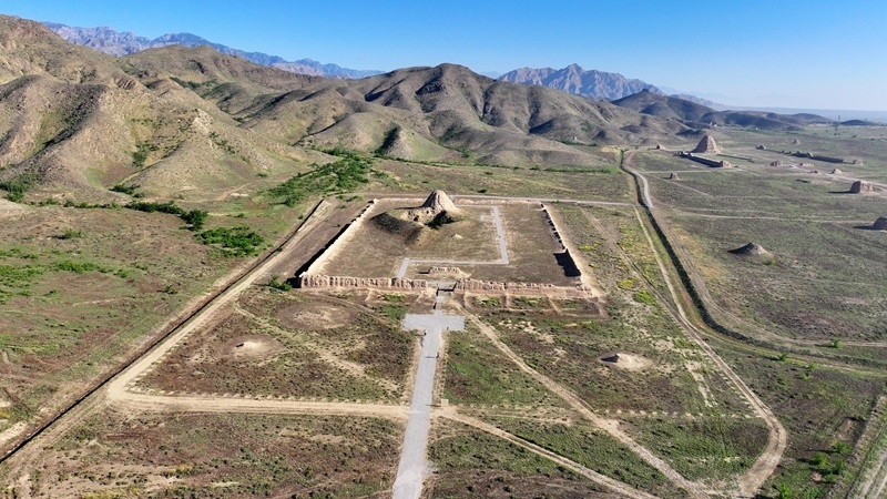 2024年8月13日拍攝的西夏陵MIII-93號陪葬墓(無人機照片)。