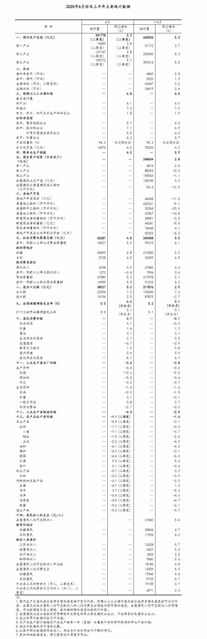上半年,在以習(xí)近平同志為核心的黨中央堅強(qiáng)領(lǐng)導(dǎo)下,各地區(qū)各部門認(rèn)真貫徹落實黨中央、國務(wù)院決策部署,堅持穩(wěn)中求進(jìn)工作總基調(diào),完整準(zhǔn)確全面貫徹新發(fā)展理念,加快構(gòu)建新發(fā)展格局,統(tǒng)籌國內(nèi)經(jīng)濟(jì)工作和國際經(jīng)貿(mào)斗爭,有效實施更加積極有為的宏觀政策,國民經(jīng)濟(jì)頂住壓力、迎難而上,經(jīng)濟(jì)運(yùn)行總體平穩(wěn)、穩(wěn)中向好,生產(chǎn)需求穩(wěn)定增長,就業(yè)形勢總體穩(wěn)定,居民收入繼續(xù)增加,新動能成長壯大,高質(zhì)量發(fā)展取得新進(jìn)展,社會大局保持穩(wěn)定。