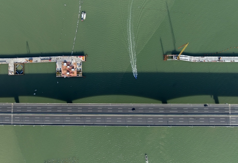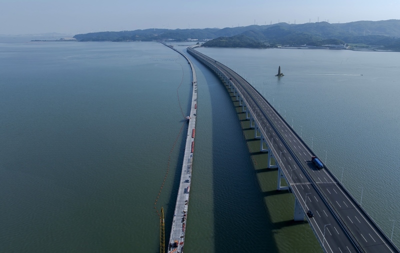 這是漳江灣跨海特大橋主棧橋(7月16日攝)。