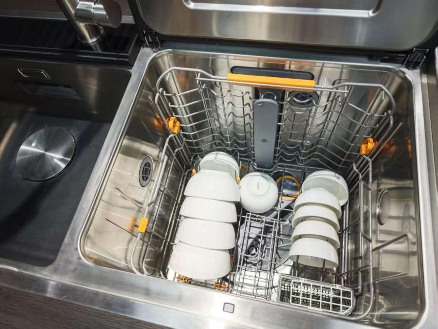 圖為某品牌水槽洗碗機內部。新華網(wǎng)記者 趙秋玥攝