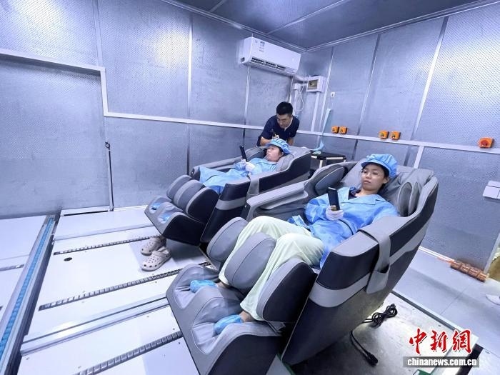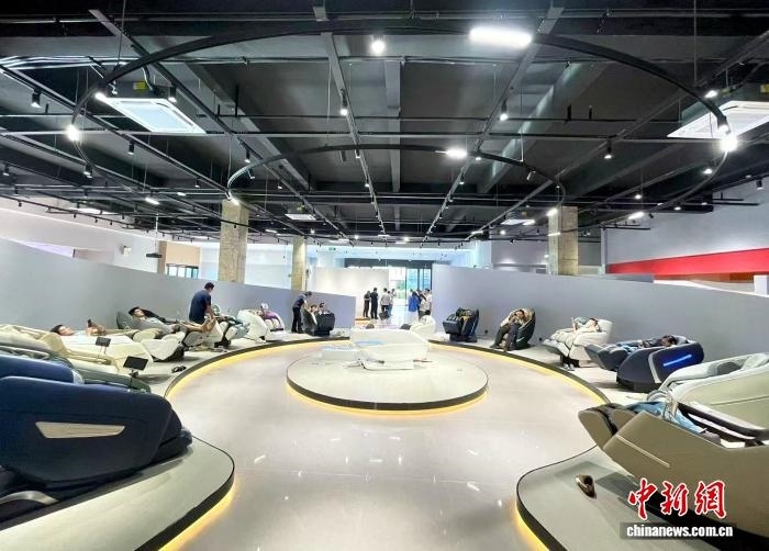 工作人員檢測(cè)按摩椅功能。中新網(wǎng)記者 葉茂 攝
