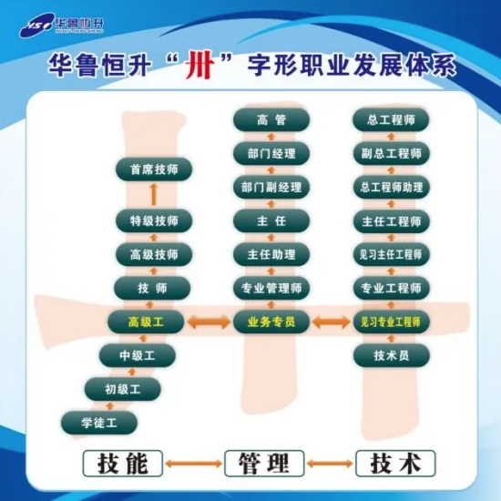 華魯恒升這個“卅”字,正是湖北總工會“卅”字形職業(yè)發(fā)展體系的縮影?!凹寄埽夹g(shù)-管理”三條事業(yè)路徑既能縱向發(fā)展又能橫向連接;既可以在任一賽道向上攀登,又能橫向貫通跨領域成長成才。
