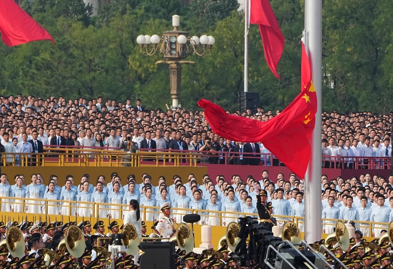 9月3日,紀(jì)念中國人民抗日戰(zhàn)爭暨世界反法西斯戰(zhàn)爭勝利80周年大會在北京隆重舉行。這是天安門廣場舉行隆重的升國旗儀式。