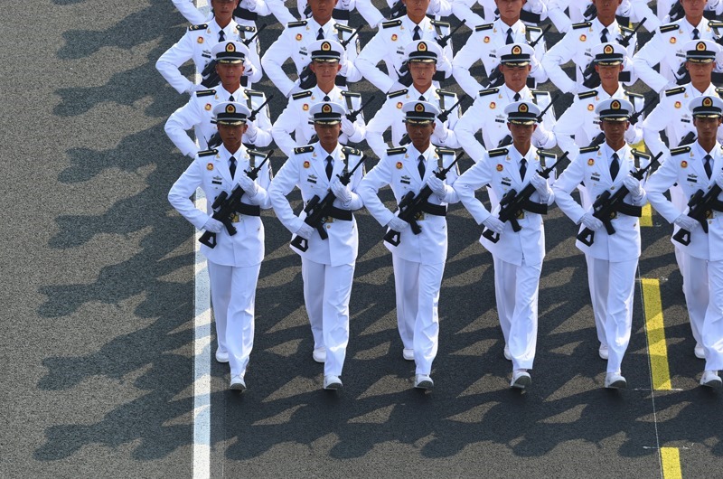 9月3日,紀(jì)念中國(guó)人民抗日戰(zhàn)爭(zhēng)暨世界反法西斯戰(zhàn)爭(zhēng)勝利80周年大會(huì)在北京隆重舉行。這是海軍方隊(duì)接受檢閱。