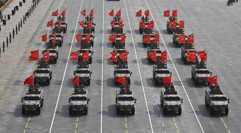 9月3日,紀(jì)念中國(guó)人民抗日戰(zhàn)爭(zhēng)暨世界反法西斯戰(zhàn)爭(zhēng)勝利80周年大會(huì)在北京隆重舉行。這是裝備方隊(duì)接受檢閱。
