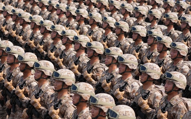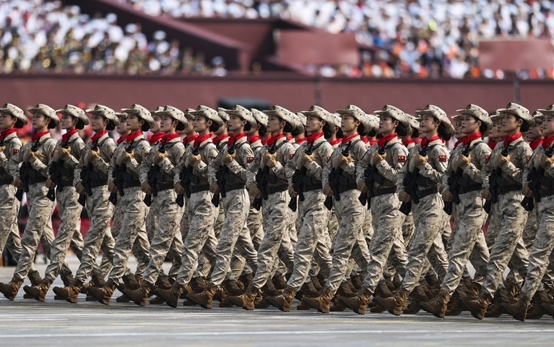 9月3日,紀(jì)念中國人民抗日戰(zhàn)爭暨世界反法西斯戰(zhàn)爭勝利80周年大會(huì)在北京隆重舉行。這是網(wǎng)絡(luò)空間部隊(duì)方隊(duì)接受檢閱。