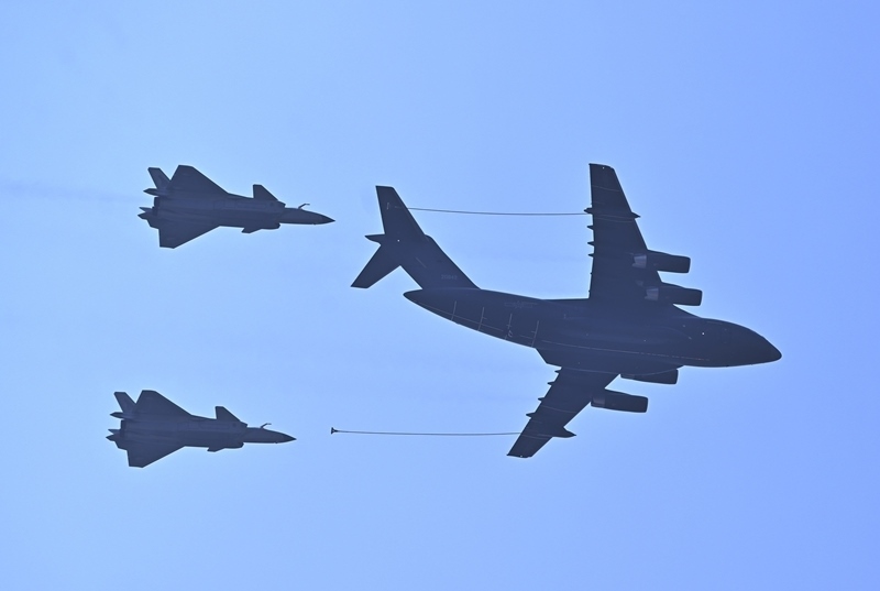 9月3日,紀(jì)念中國人民抗日戰(zhàn)爭暨世界反法西斯戰(zhàn)爭勝利80周年大會(huì)在北京隆重舉行。這是加受油機(jī)梯隊(duì)接受檢閱。