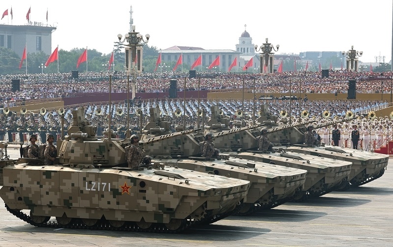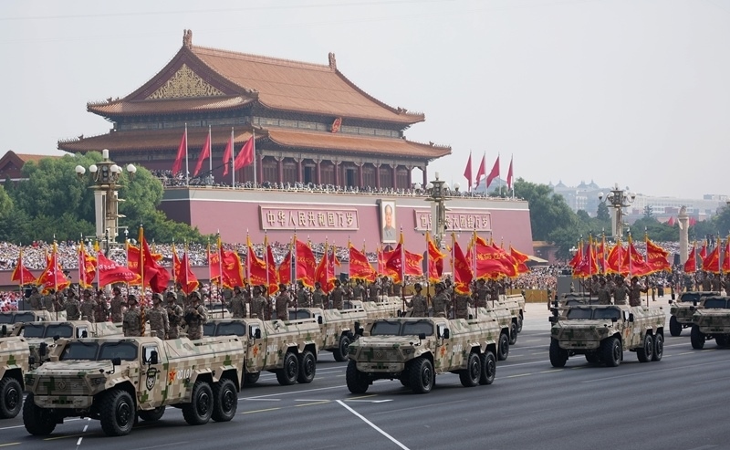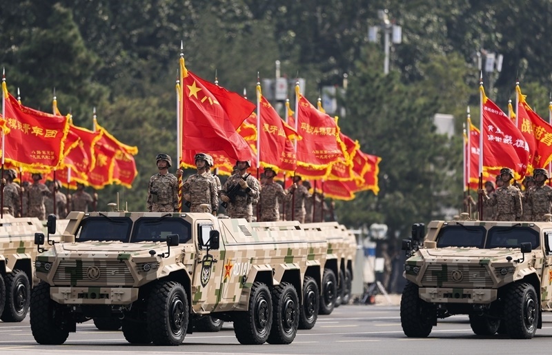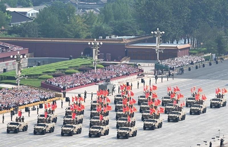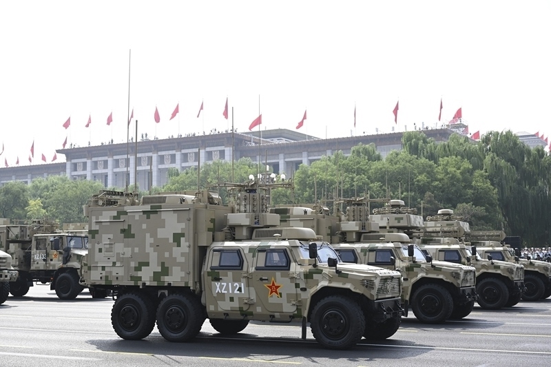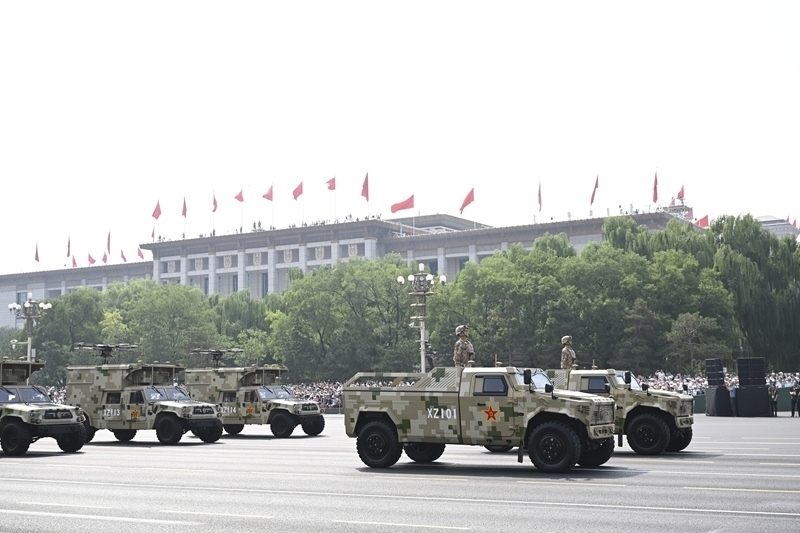 9月3日,紀(jì)念中國人民抗日戰(zhàn)爭暨世界反法西斯戰(zhàn)爭勝利80周年大會(huì)在北京隆重舉行。這是信息支援方隊(duì)接受檢閱。