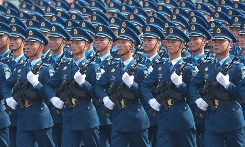 9月3日,紀(jì)念中國人民抗日戰(zhàn)爭暨世界反法西斯戰(zhàn)爭勝利80周年大會(huì)在北京隆重舉行。這是空軍方隊(duì)接受檢閱。