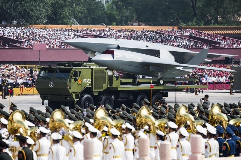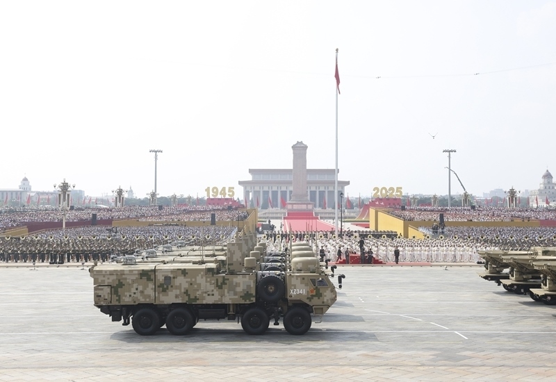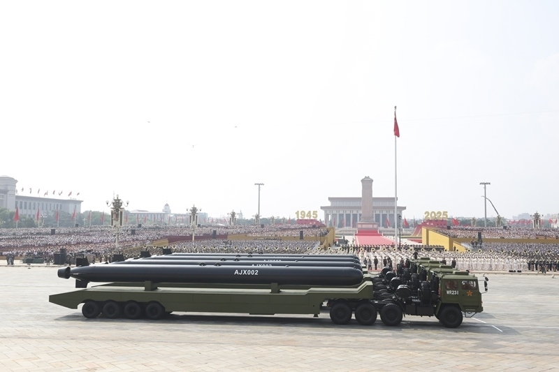 9月3日,紀(jì)念中國人民抗日戰(zhàn)爭暨世界反法西斯戰(zhàn)爭勝利80周年大會(huì)在北京隆重舉行。這是高超聲速導(dǎo)彈方隊(duì)接受檢閱。