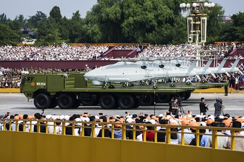 9月3日,紀(jì)念中國人民抗日戰(zhàn)爭暨世界反法西斯戰(zhàn)爭勝利80周年大會(huì)在北京隆重舉行。這是空中無人作戰(zhàn)方隊(duì)接受檢閱。