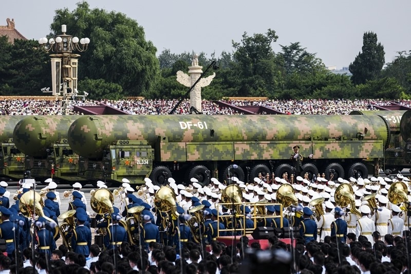 9月3日,紀(jì)念中國人民抗日戰(zhàn)爭暨世界反法西斯戰(zhàn)爭勝利80周年大會(huì)在北京隆重舉行。這是核導(dǎo)彈第一方隊(duì)接受檢閱。