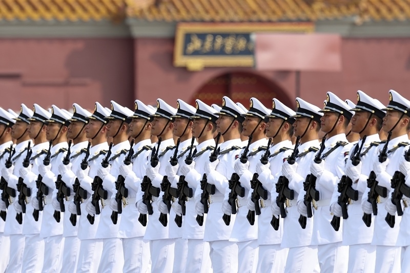 9月3日,紀(jì)念中國人民抗日戰(zhàn)爭暨世界反法西斯戰(zhàn)爭勝利80周年大會(huì)在北京隆重舉行。這是海軍方隊(duì)接受檢閱。