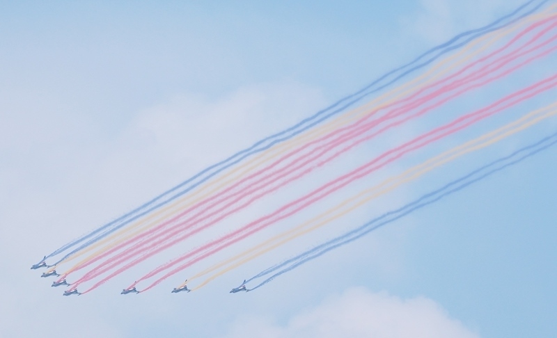 9月3日,紀(jì)念中國人民抗日戰(zhàn)爭暨世界反法西斯戰(zhàn)爭勝利80周年大會(huì)在北京隆重舉行。這是教練機(jī)梯隊(duì)接受檢閱。