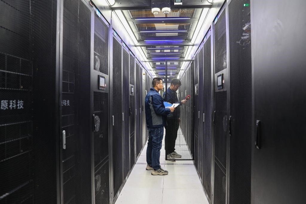 2025年1月6日,工作人員在中國(guó)移動(dòng)(甘肅·慶陽(yáng))數(shù)據(jù)中心機(jī)房?jī)?nèi)巡檢。 新華社記者 郎兵兵 攝