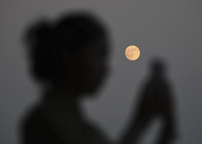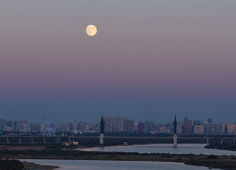 10月6日在黑龍江省哈爾濱市拍攝的“超級(jí)月亮”。