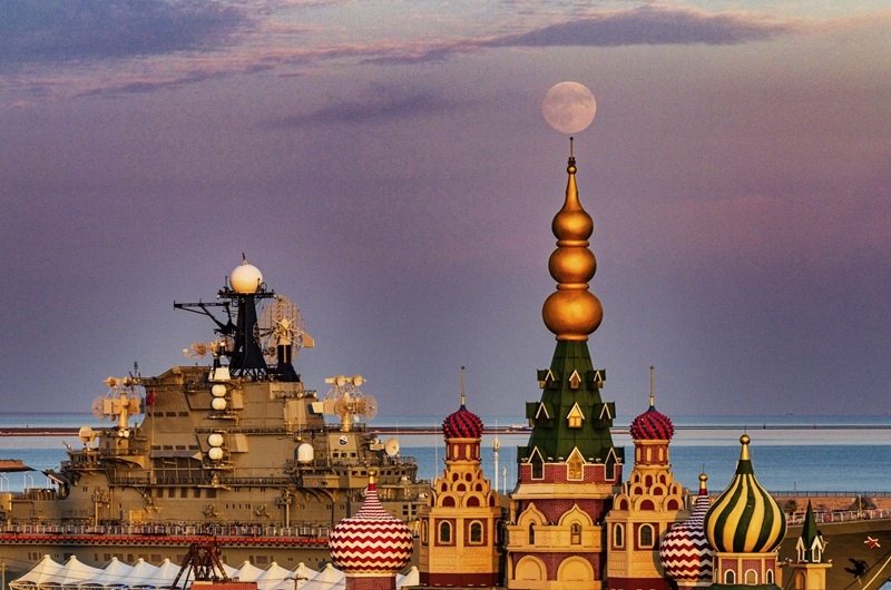 10月6日在天津市濱海新區(qū)泰達(dá)航母主題公園拍攝的中秋滿月(無(wú)人機(jī)照片)。