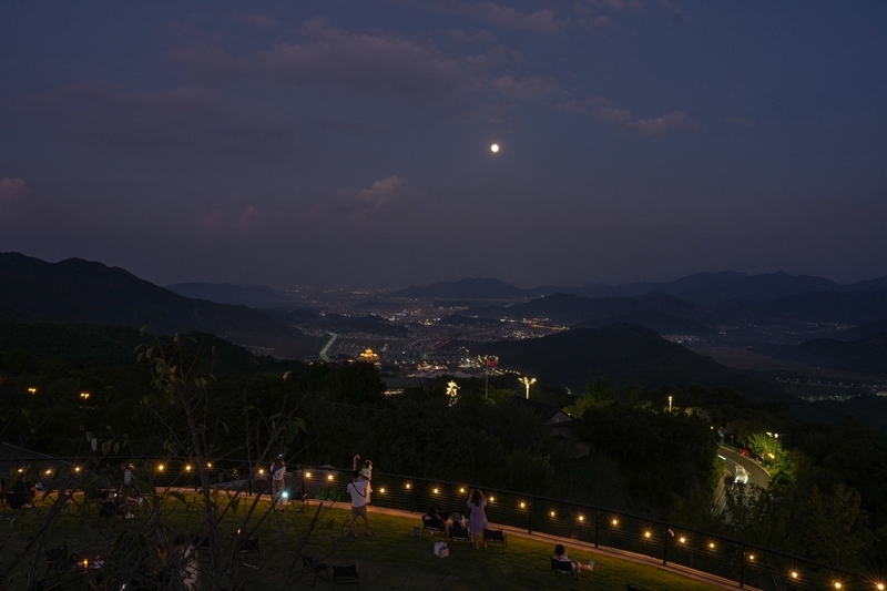 10月6日,游客在浙江省寧波市奉化區(qū)溪口鎮(zhèn)東山村一處觀景平臺(tái)賞月。